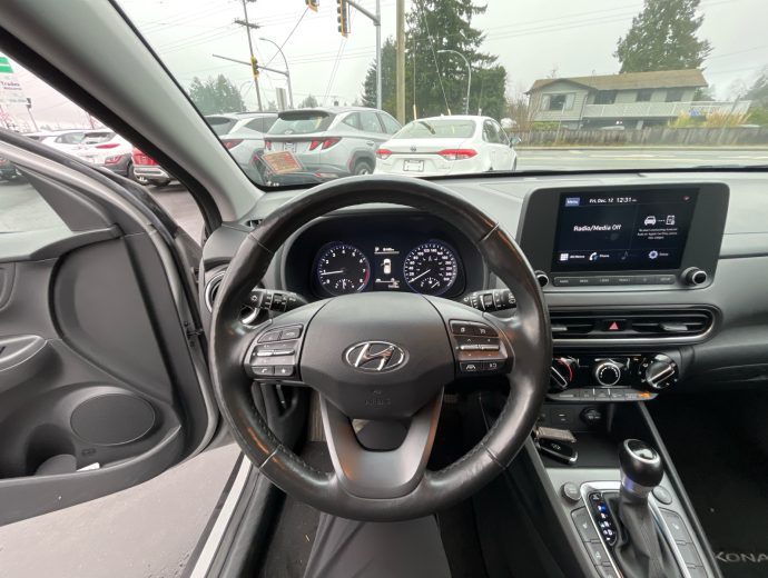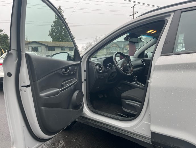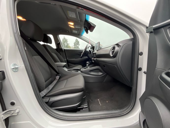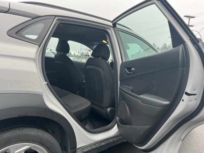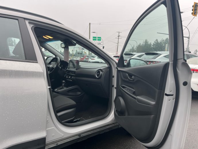 Looking for a vehicle that is easy to get in (and out)? One that parks easy and still handles well on the wet and snowy roads? Check out this fuel efficient, 4 cylinder, ALL WHEEL DRIVE that hits the mark without breaking the budget. All the Kona hatchbacks on our lot have great features like heat ed seats, backup camera, alloy wheels, fog lights, bluetooth, steering wheel audio controls and this PREFERRED TRIM LEVEL adds HEATED STEERING WHEEL, BLIND SPOT ALERT, REAR CROSS TRAFFIC ALERT and PUSH BUTTON START. - Also has the automatic transmission, air conditioning, cruise control, USB jack, Apple carplay, Android Auto. It is satellite radio capable and has power windows, power locks and power windows. Etc. etc. etc. Also has the the balance of one of the most inclusive factory warranties in the business. and is available in other colours too. so... If you are looking at a Toyota C-HR, a Honda FR-V, a Subaru Crosstrek, or a Mazda CX-3, come and take a look at what your money will buy you on this Kona.