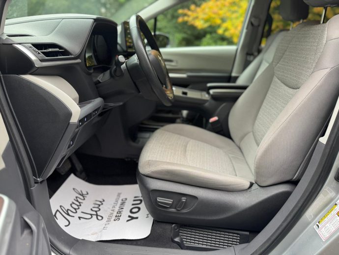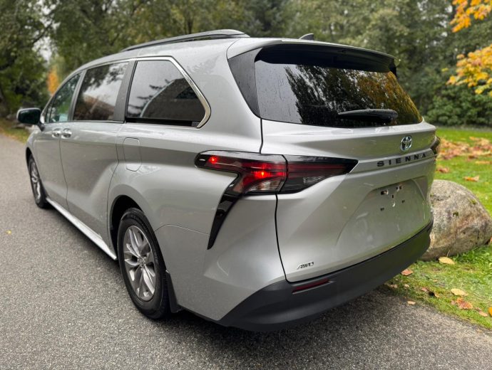 The 2023 Toyota Sienna LE AWD is an 8-passenger minivan with a hybrid powertrain, and all-wheel drive.